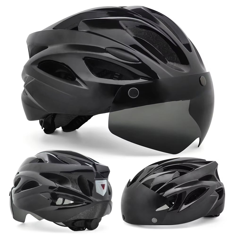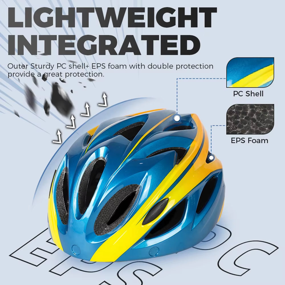 Integrally-molded construction ensures structural integrity while the aerodynamic design reduces wind resistance and provides comfortable fit for extended cycling sessions.